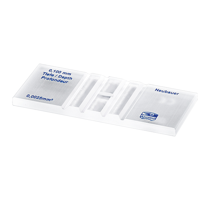Zählkammer zur Erythrozyten- und Leukozytenzählung aus optischem Spezialglas gefertigt.
