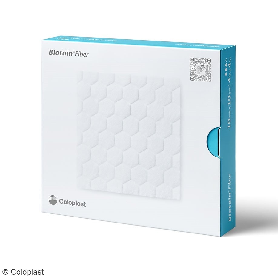 Biatain® Fiber ist ein gelbildender Faserverband, der aus Natriumcarboxymethylcellulose (CMC) und Bikomponentenfasern besteht. Durch ein thermofixiertes Netz in stabiler Hexagon-Form wird der Verband zusätzlich verstärkt. Dies nennt sich HexaLock Technologie®. Bei Kontakt mit Wundexsudat absorbieren die CMC-Fasern im Verband das Exsudat und bilden ein formstabiles Gel. Der gelierte Verband hält das Exsudat zurück und passt sich dem Wundbett an, wodurch ein feuchtes Wundheilungsmilieu entsteht. Diese Umgebung unterstützt den Heilungsprozess der Wunde und erleichtert die Entfernung von avitalem Gewebe (autolytisches Debridement).