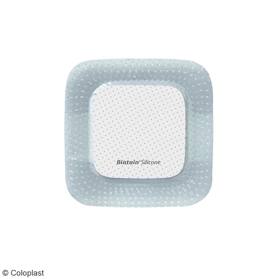 Biatain® Silicone ist ein Polyurethanschaumverband mit einer sanften, vollflächigen Silikonhaftung. Durch einen vollen Kontakt des Schaumkissens mit der Wunde zeichnet sich der Verband durch eine ungehinderte, sehr gute Absorption aus. Die exzellente Retention ermöglicht den Einsatz des Verbandes unter Druck (Kompression). Durch das Silikon Distanzgitter lässt sich der Verband atraumatisch und schmerzarm Entfernen und Repositionieren. Eine einfache, aseptische Applikation wird dank der Non-Touch-Technologie ermöglicht, einer 3-teiligen Applikationsfolie. Durch den extrem flexiblen Aufbau, ist der Verband sehr anschmiegsam und passt sich gut der Körperkontur an.