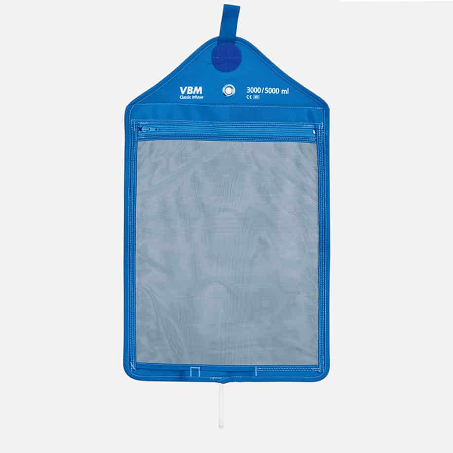 Classic Infusor zur Druckinfusion, Spülung, Transfusion und invasiven Blutdruckmessung, Reißverschluss zum Einlegen unterschiedlicher Passformen von Flüssigkeitsbeutel. Das Polyamidmaterial des Classic Infusors ermöglicht eine einfache Reinigung und Desinfektion. Transparentes Netzmaterial bietet eine klare Sicht auf Flüssigkeitsbeutel und Flüssigkeitsstand.