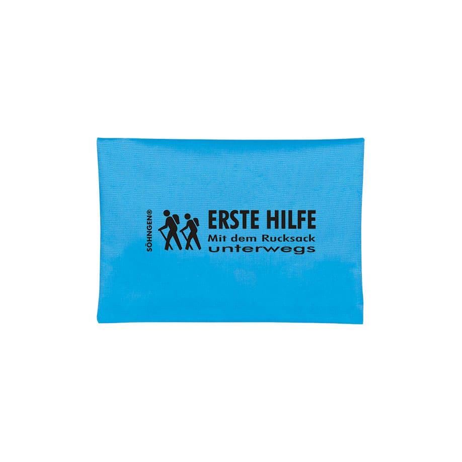 Praktisches SÖHNGEN® Erste-Hilfe-Set für Rucksacktouren. Speziell abgestimmt, praxisorientiert zusammengestellt und kompakt untergebracht in einer ansprechenden Reißverschlusstasche mit Motivdruck und Beschriftung. Inhalt: aluderm® Verbände, aluderm®-aluplast Wundpflaster, Heftpflaster, Binden, Schutzhandschuhe, Schere, Pinzette, Wundreinigungstücher, Trillerpfeife. Taschengröße ca. 210 x 140 x 50 mm.