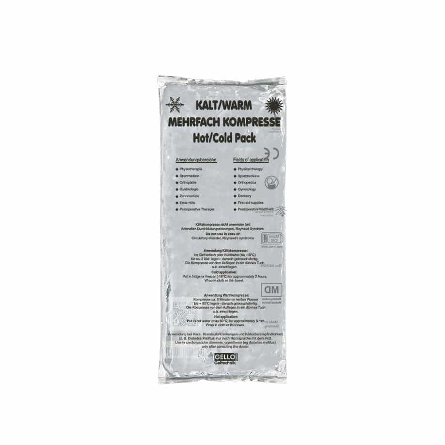 Mehrfach Kalt-/Warm Kompressen zeichnen sich aus durch eine gleichmäßige Kälte-/Wärme-Verteilung, äußerste Flexibilität in allen Temperaturbereichen bis -18°C, optimalen Hautkontakt, Wiederverwendbarkeit, hohe Reißfestigkeit durch die Verwendung einer Spezialverbundfolie, die physiologische Unbedenklichkeit des Füllmaterials, die einfache Entsorgungsmöglichkeit über den Hausmüll. Zum Einsatz in: Sportmedizin, Zahnmedizin, Physiotherapie, Erste Hilfe, Orthopädie, Gynäkologie, postoperative Therapie.