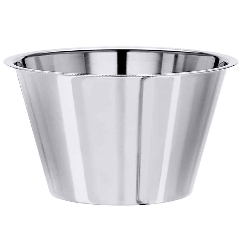 aus Edelstahl 18/10, seidenmatt poliert, mit glattem, flachem Rand, schwere Qualität, Ø-Boden 6,3 cm, Ø-Innen 9,5 cm