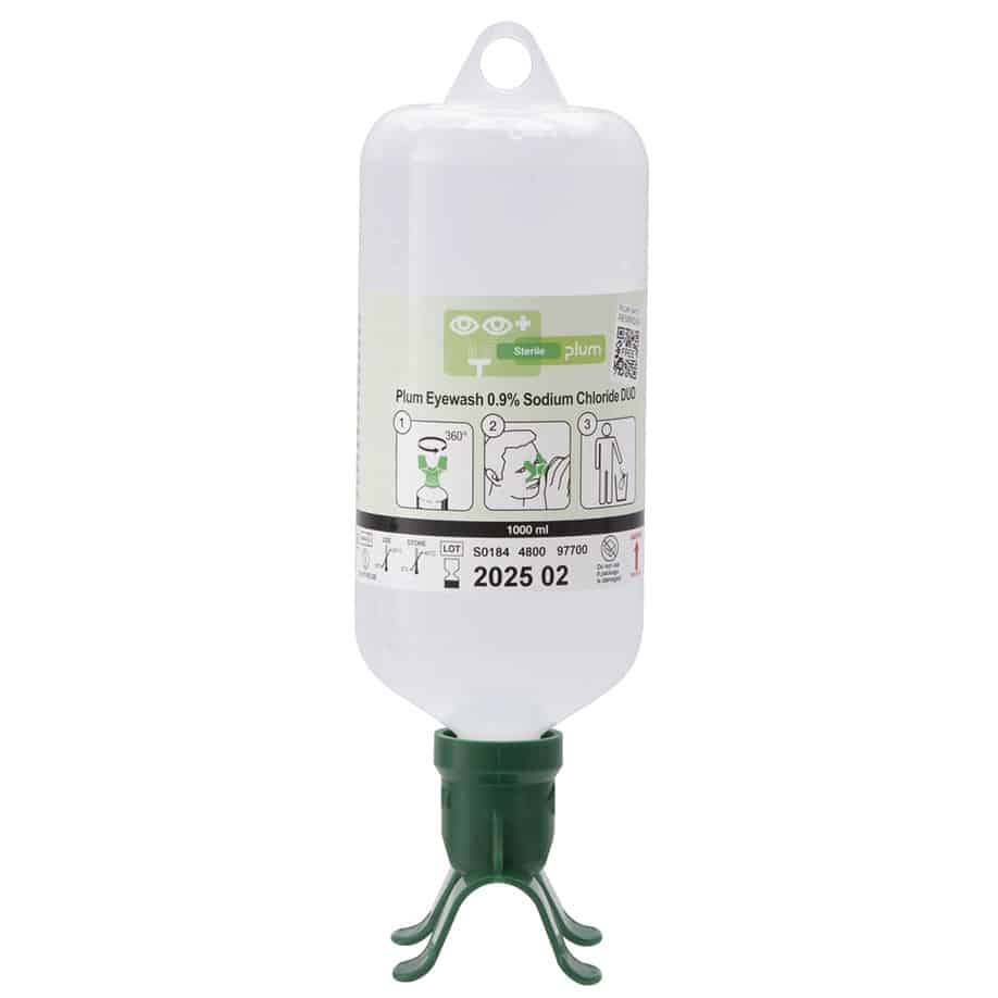 Flasche mit Augenaufsatz zum gleichzeitigen Spülen beider Augen, gefüllt mit steriler Natriumchloridlösung. Entspricht der DIN EN 15154-4. Auch zur Nachfüllung der Augenspülstation Duo geeignet. 3,5 Jahre haltbar.