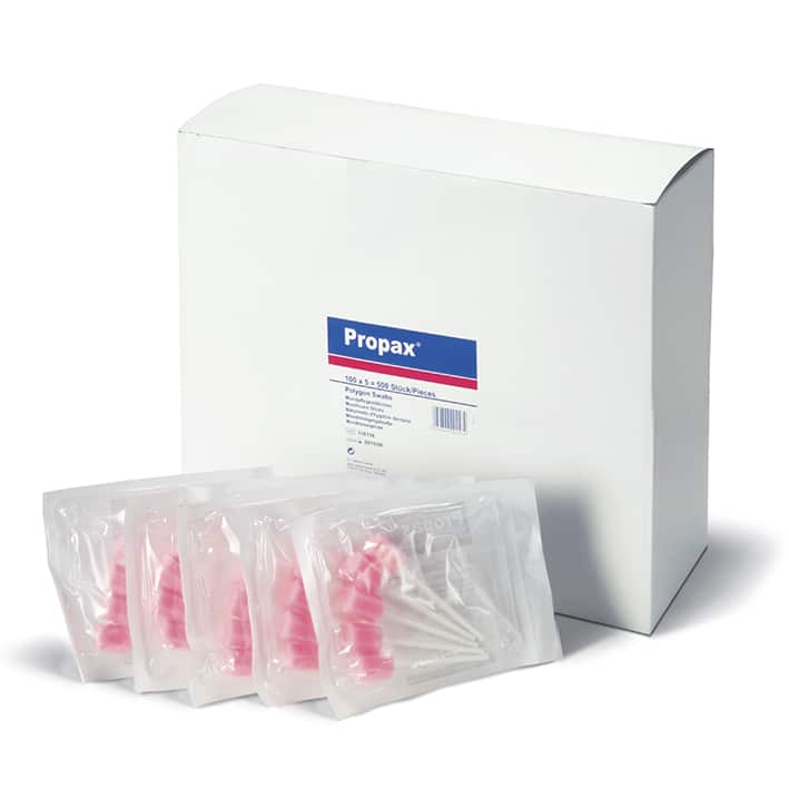 Propax® sind Reinigungsstäbchen mit Schaumstoffummantelung für eine sanfte Mundpflege. Durch die Oberfläche des Schaumstoffs wird eine gute, mechanische Reinigung der Zunge und Mundhöhle bei einfacher und sicherer Handhabung ermöglicht. Der neutrale Schaumstoff ist mit jeder Flüssigkeit tränkbar. So können z.B. reinigende Lösungen verwendet werden. Für die Flüssigkeitszufuhr eignen sich, je nach Indikation, verschiedene Tees oder Fruchtsäfte. Propax® Reinigungsstäbchen bestehen aus Polypropylen mit einem Schaumstoffkopf.