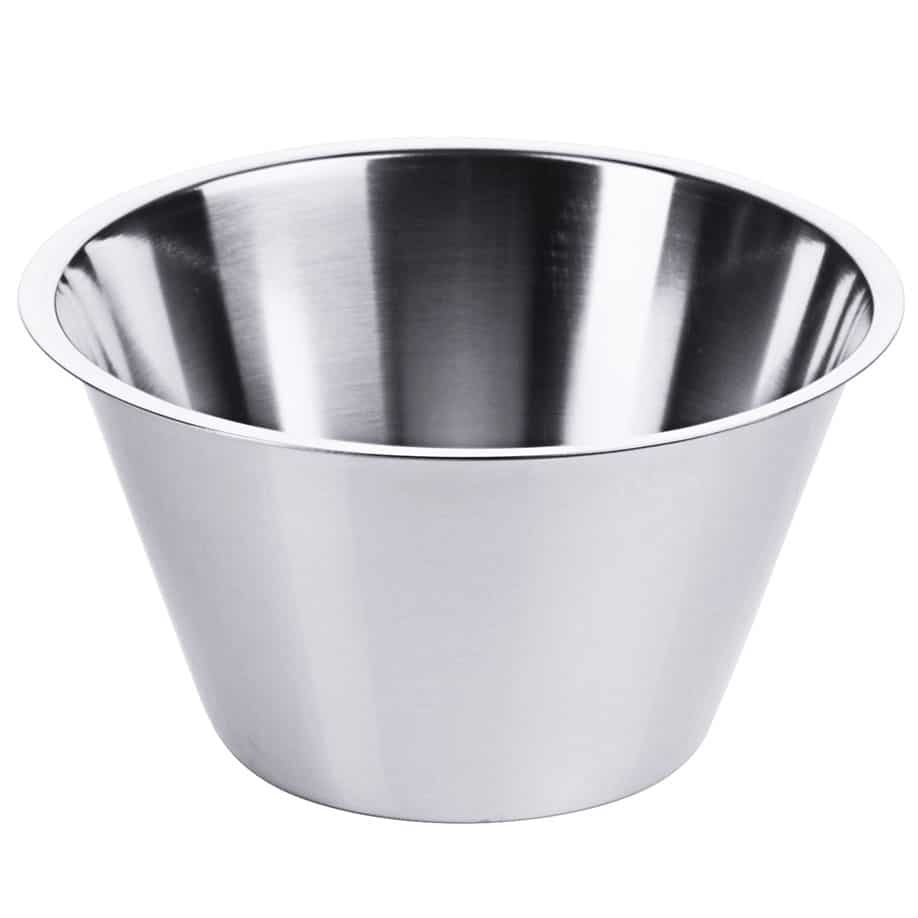 tiefe konische Form, aus Edelstahl 18/10, seidenmatt poliert, offener, glatter Rand, mittelschwere Qualität, Ø-Boden 7,5 cm, Ø-Innen 12 cm