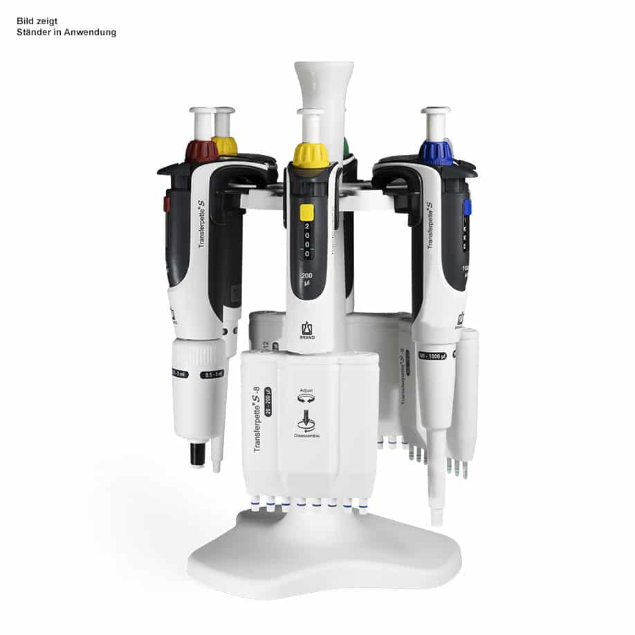 Tischständer (Rondell) für bis zu 6 Pipetten. Mit den Ständer positionieren Sie Ihre Ein- oder Mehrkanalpipette von BRAND sicher und platzsparend im Labor.