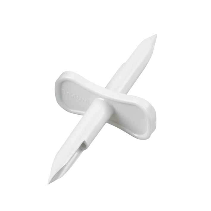 – zwei schlanke, leicht silikonisierte Einstechdorne, abgerundeter Schliff gegen Abscheren von Gummi-Partikeln
