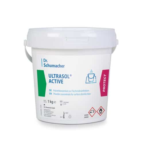 ULTRASOL ACTIVE ist ein hochwirksames Pulverkonzentrat, das zur Desinfektion und Reinigung von Flächen aller Art ein excellentes Wirkungsspektrum bietet. ULTRASOL ACTIVE ist ein praktisch staubfreies Pulver, das sehr einfach und zuverlässig dosiert werden kann. Es ist RKI AB gelistet und eignet sich sowohl zur Flächenwischdesinfektion dort, wo in der Routine erhöhte Wirksamkeitsanforderungen bestehen, als auch zur Desinfektion im Seuchenfall. Das Produkt bietet durch den in der mildalkalischen Anwendungslösung generierten Wirkstoff Peressigsäure ein umfassendes Wirkspektrum, eine hervorragende Materialverträglichkeit und eine gute Reinigungsleistung. Die Wirksamkeit von ULTRASOL ACTIVE ist auch bei hohen organischen Belastungen gewährleistet und angetrocknete Blutbelastungen können mühelos und sicher entfernt werden. ULTRASOL ACTIVE ist parfümfrei und geruchsarm und eignet sich für alle Bereiche in denen eine maximale Wirksamkeit, eine hohe Anwendersicherheit sowie eine gute Reinigungsleistung benötigt werden.