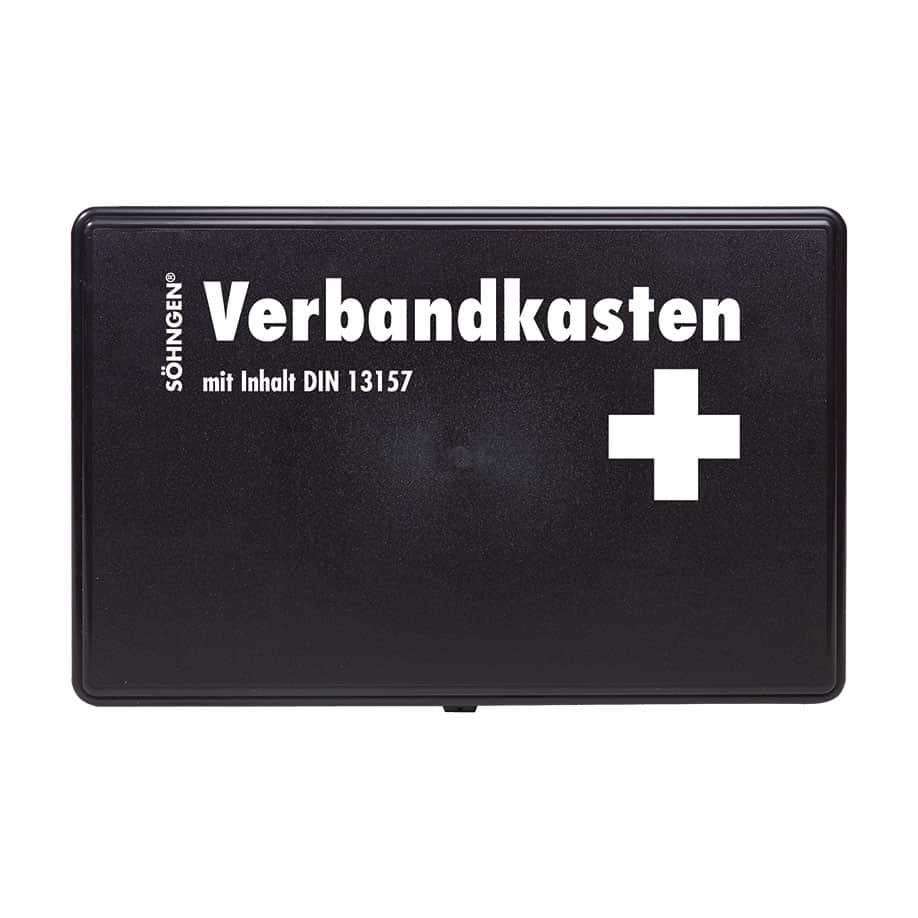 Mindestanforderungen nach DIN 13157 hinsichtlich Ausführung und Qualität. Ca. 260 x 160 x 80 mm, aus hochschlagzähem Kunststoff, mit Scharnier und Verschlusslaschen. Innen mehr Übersicht durch Extra-Tray für Kleinteile.