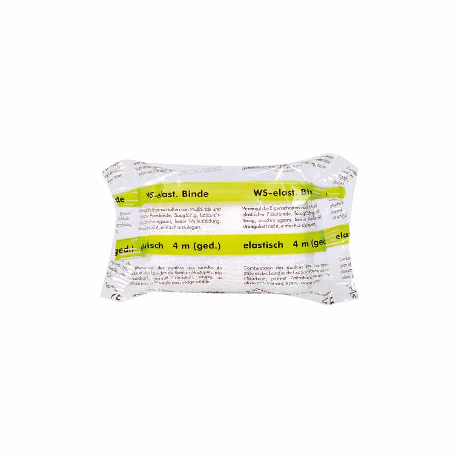 Elastische Mullbinde aus festen und elastischen Fasern, vereinigt die Eigenschaften einer Mullbinde mit den Vorzügen einer elastischen Fixierbinde mit starker Dehnfähigkeit. Die WS-elast. Binde passt sich allen Körperformen an, ist schnell und einfach anzulegen, insbesondere an Gelenken und konischen Körperteilen. Kein Abschnürren. In Zellglas verpackt, Farbcode grün.